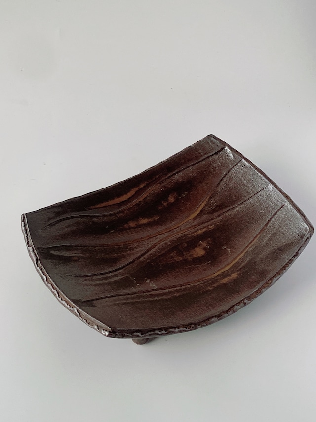 (美濃焼)灰釉四つ足焼物皿