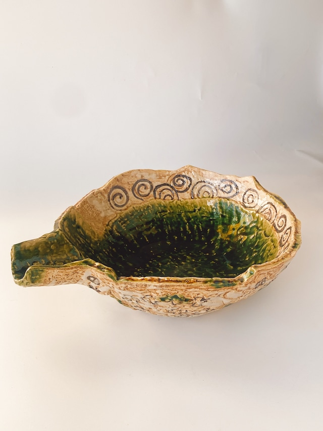 (美濃焼)織部渦紋片口盛り鉢