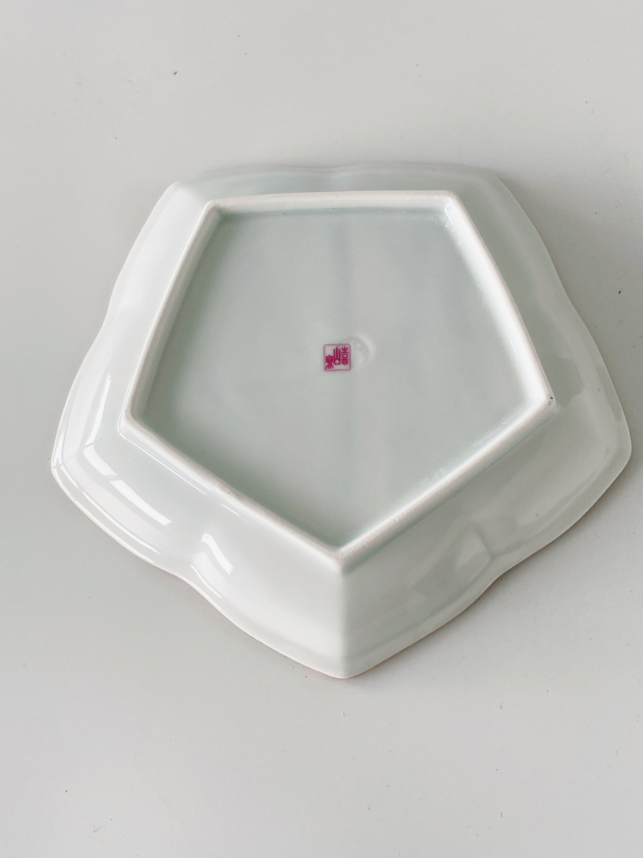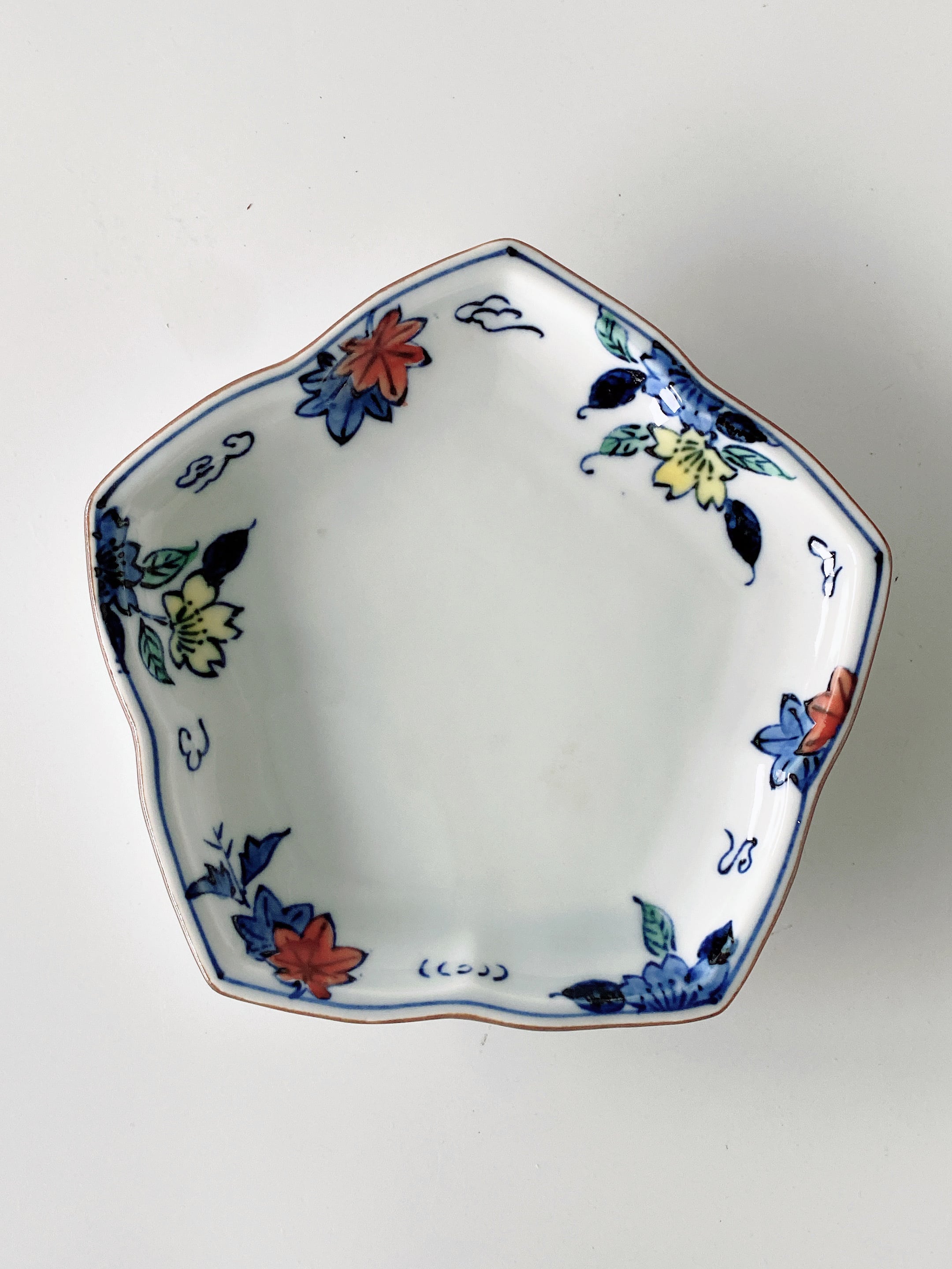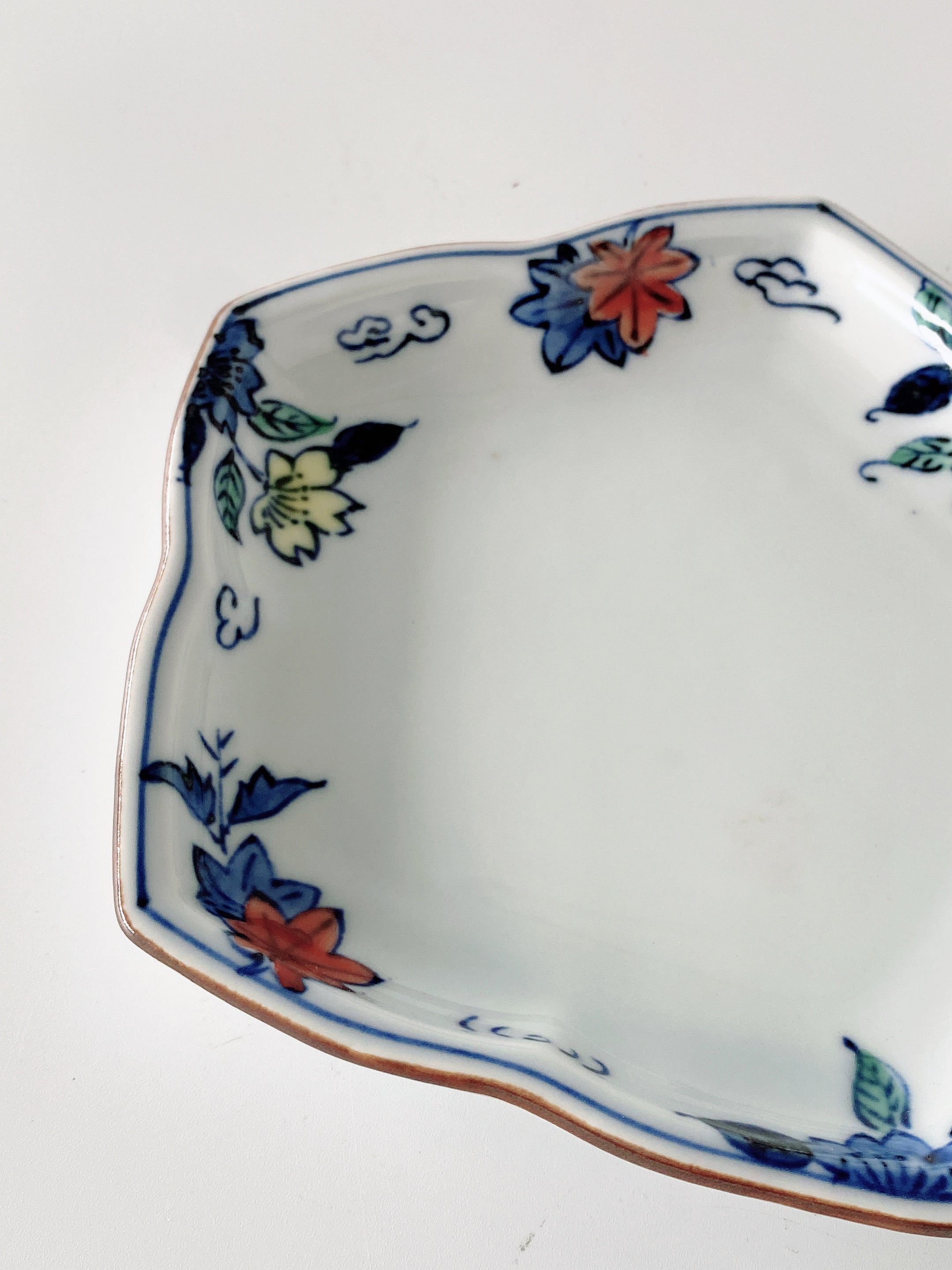 染付の絵皿に赤、黄、緑の上絵を付けて