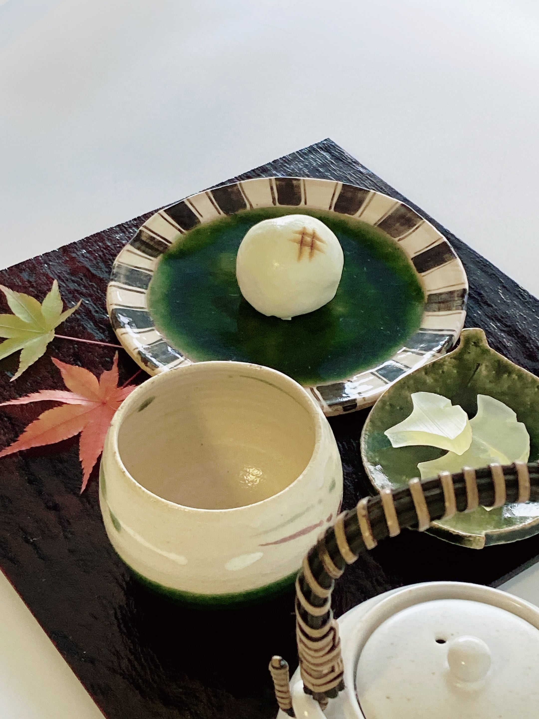 織部の深い緑が食材を際立たせます。