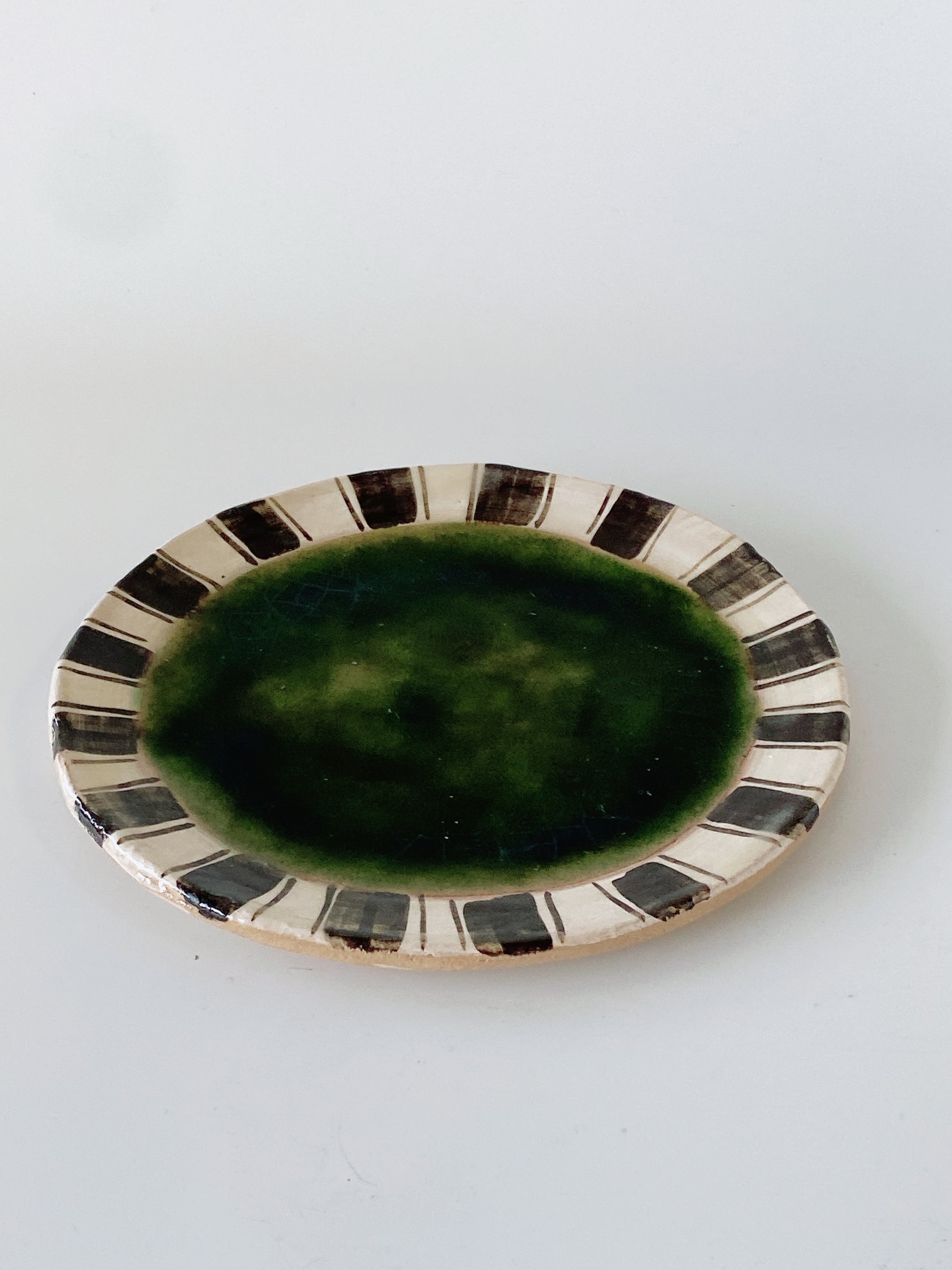 (美濃焼)織部渕十草丸皿(小)