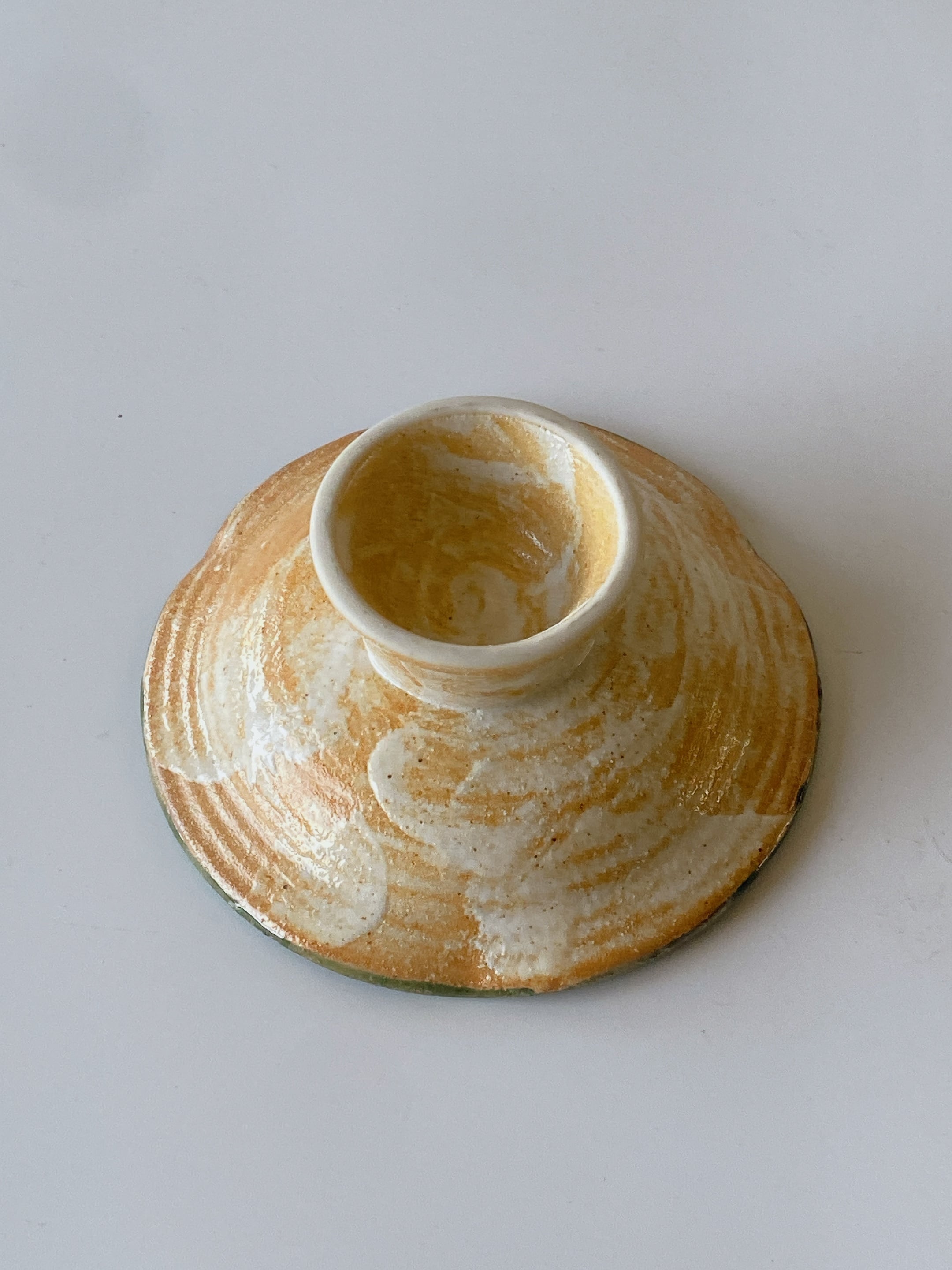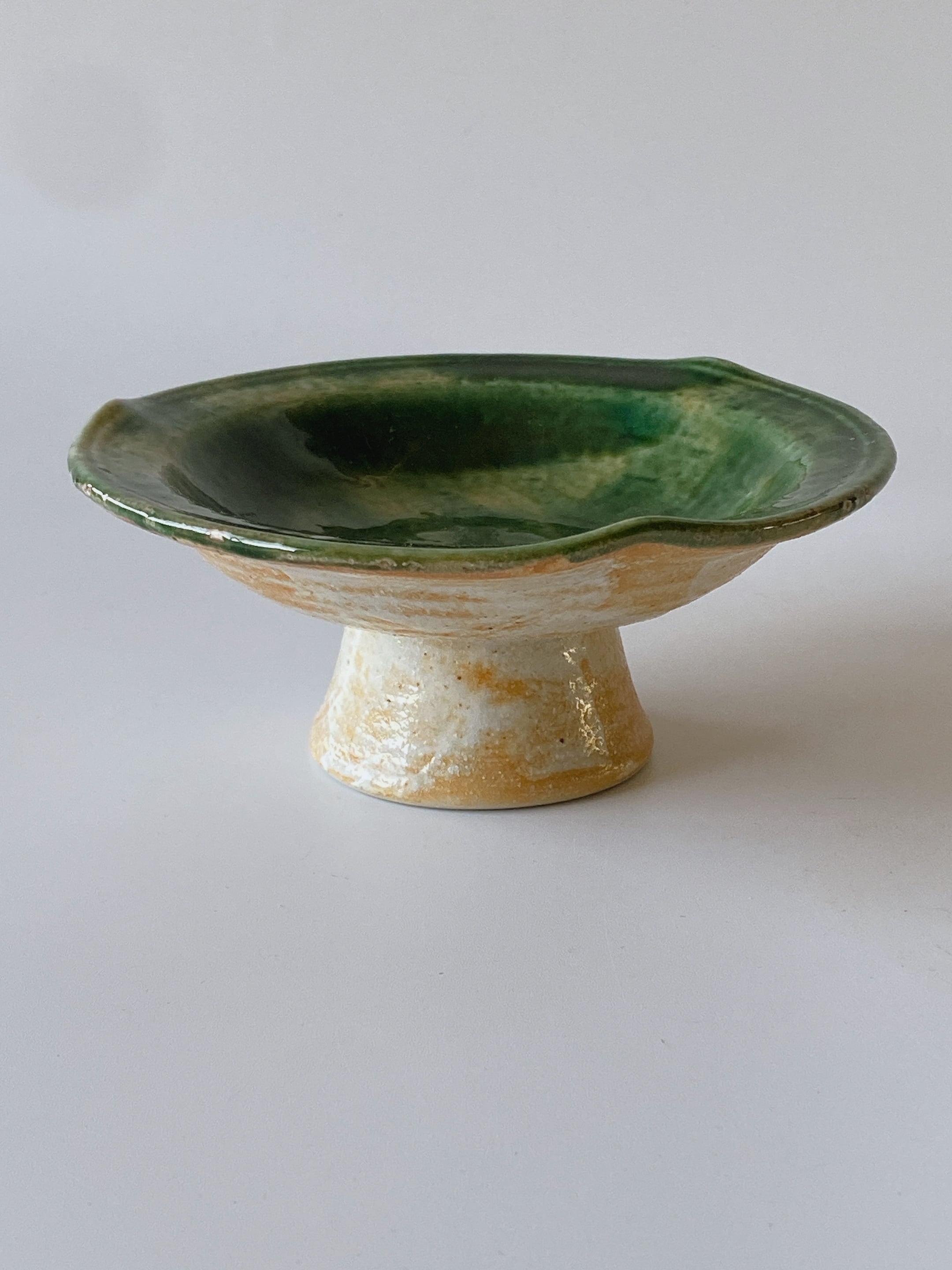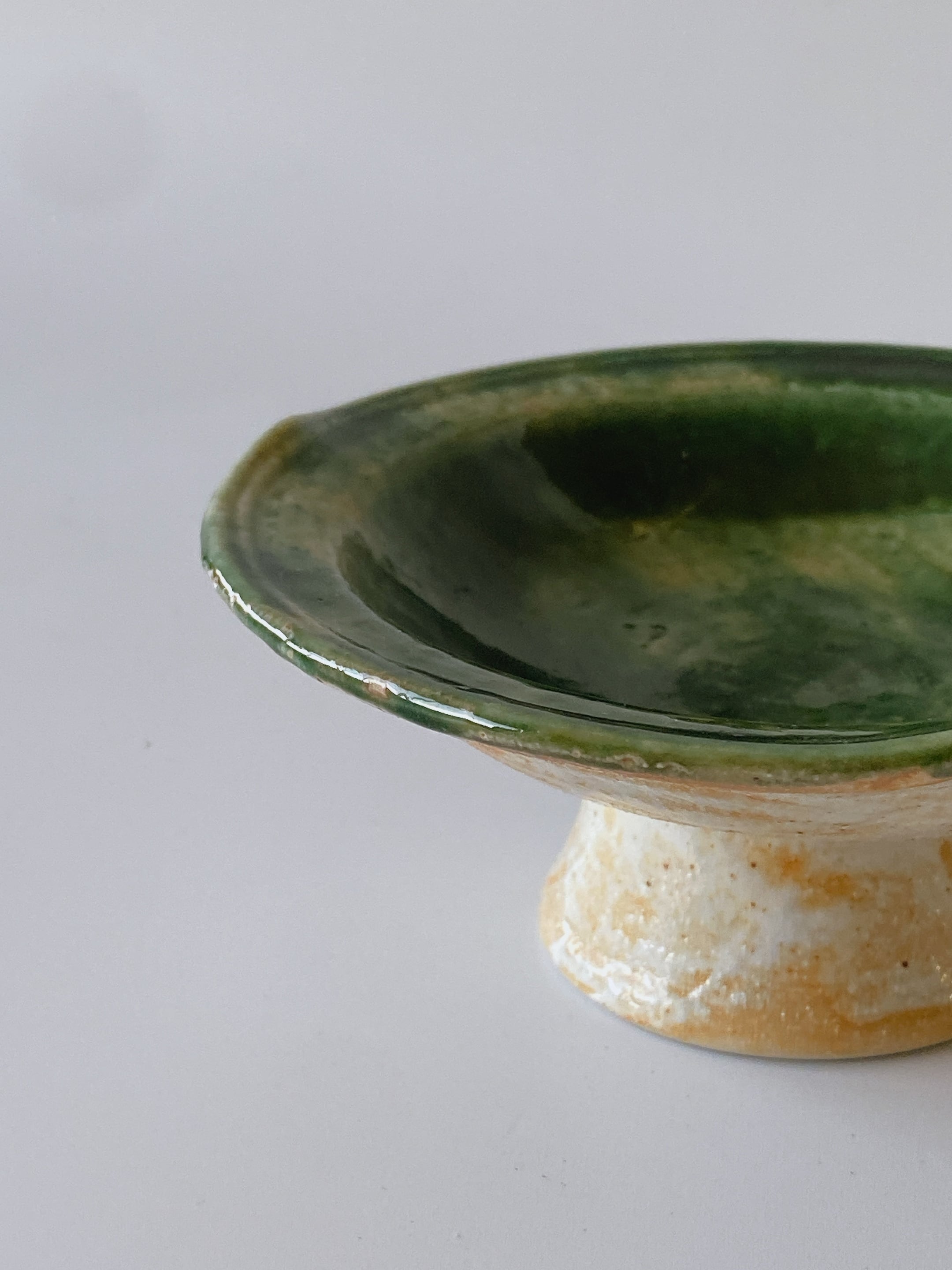 織部釉のムラもデザインのひとつとして楽しんでいただける器。高台の部分も生地に白刷毛をランダムに走らせたこだわりの一品です。