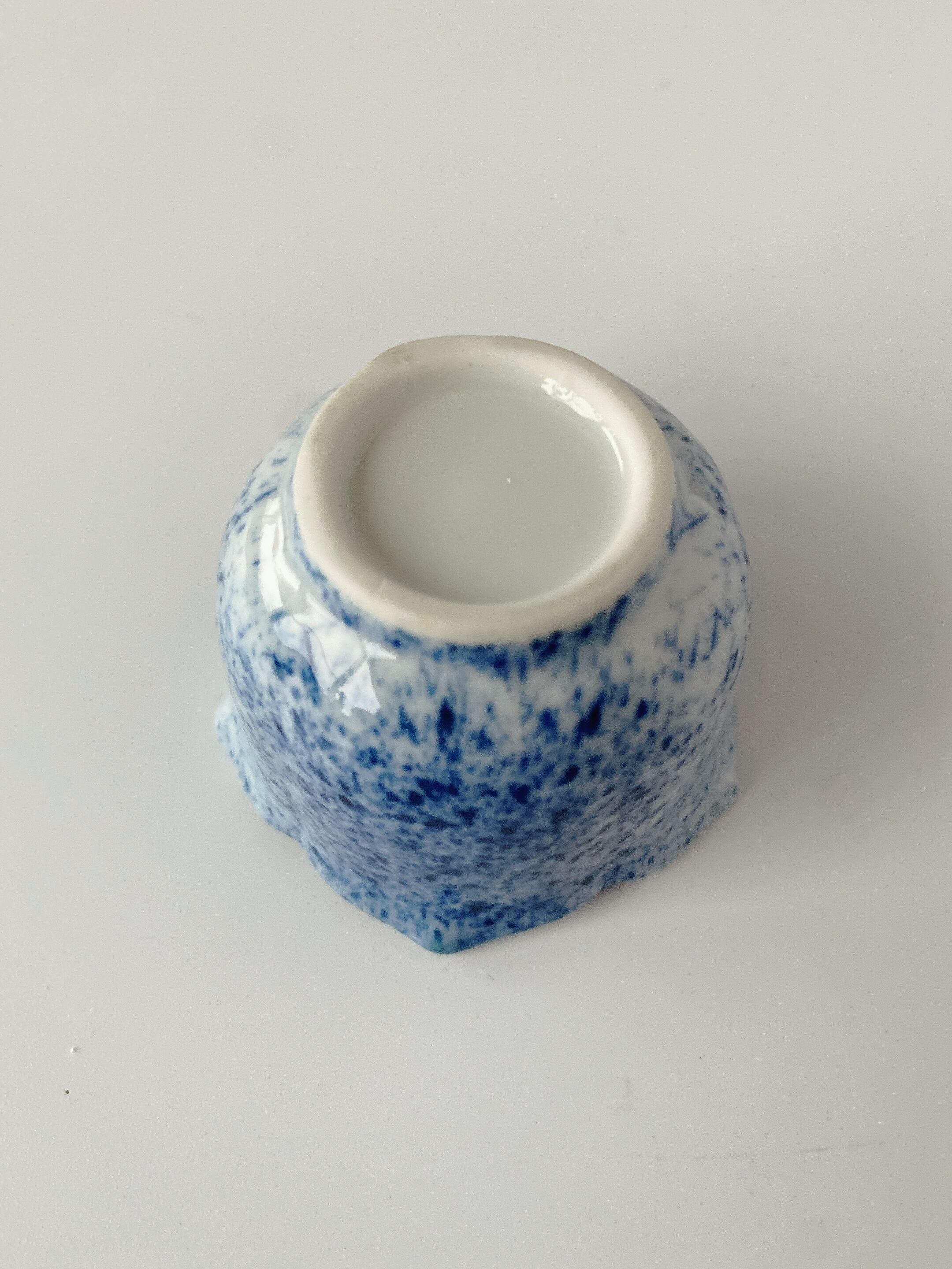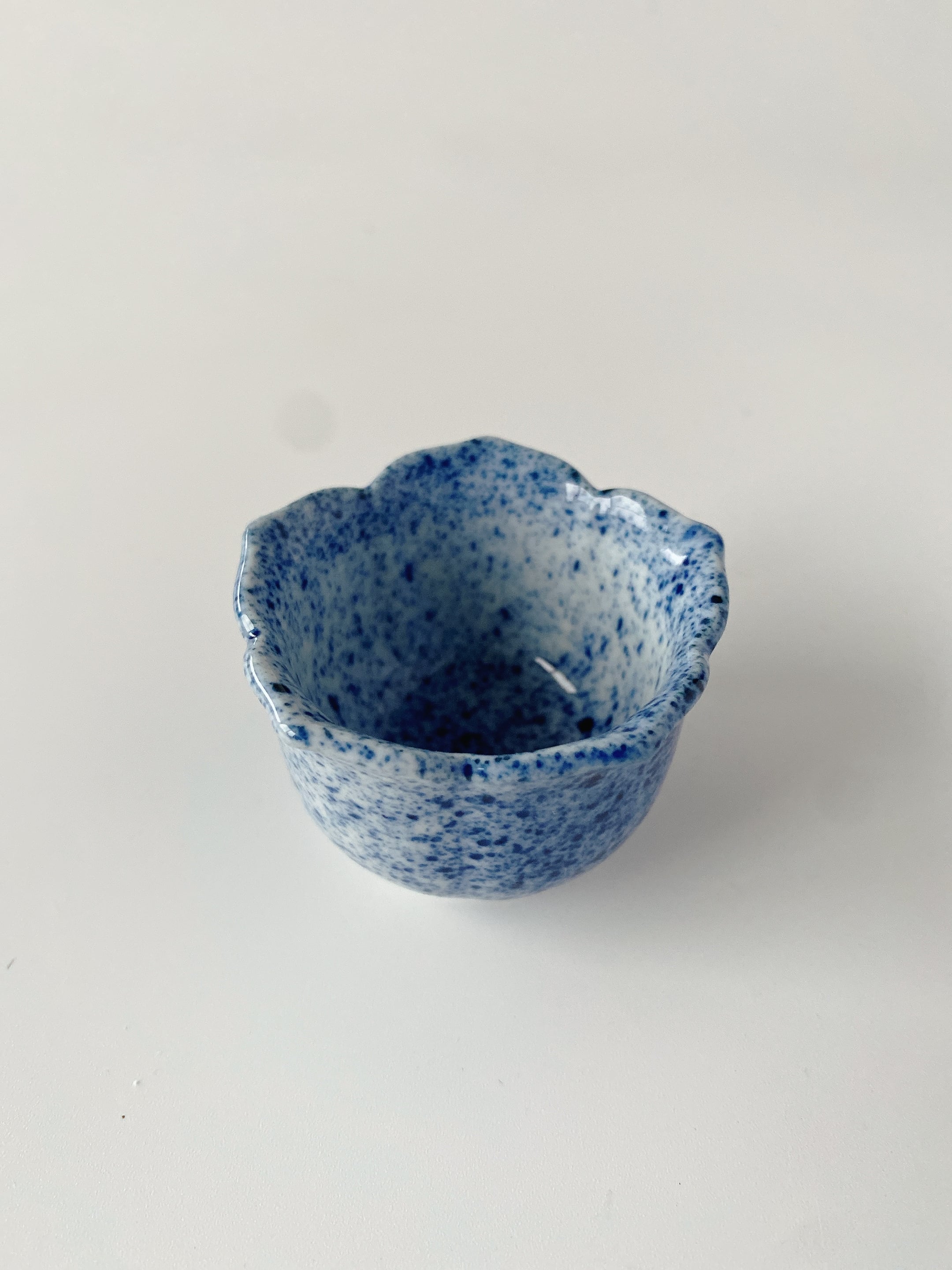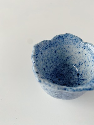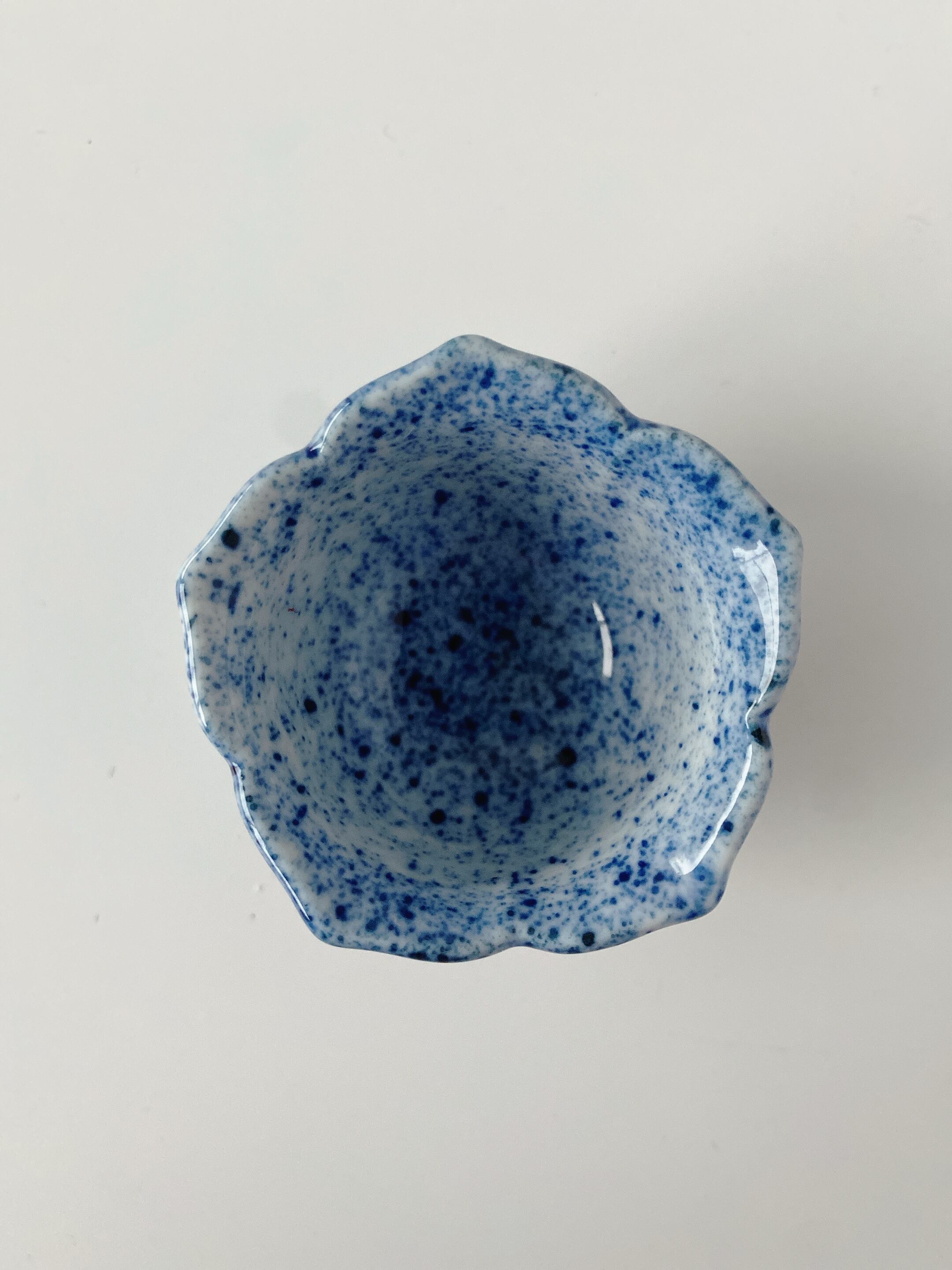 ブルーのしぶきのある桔梗の花の形の珍味です。