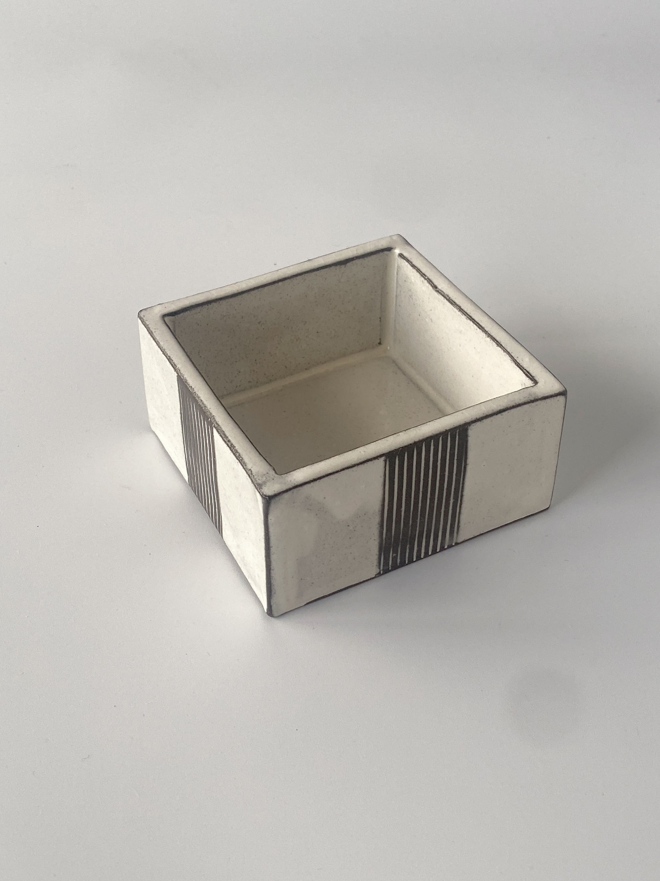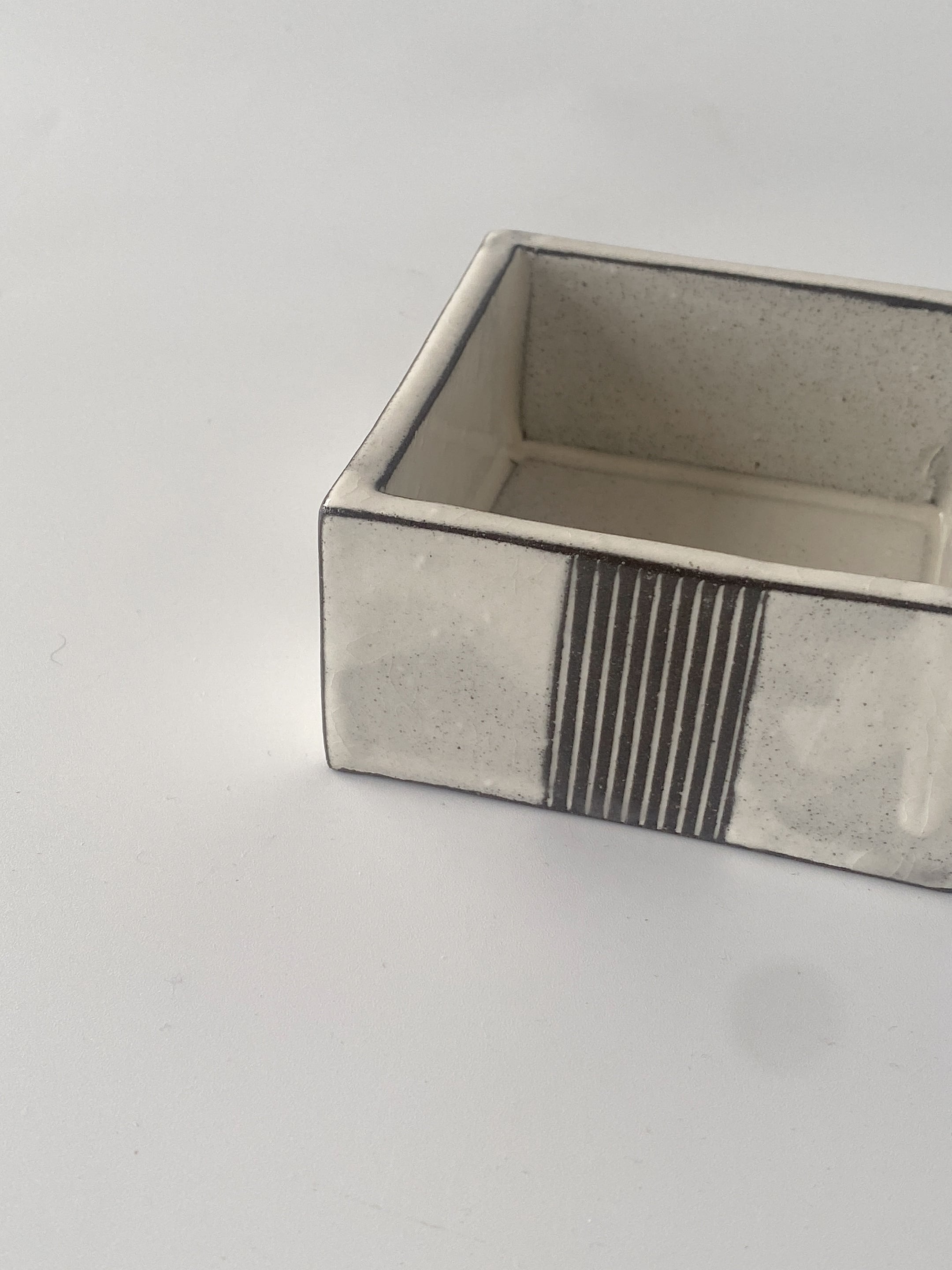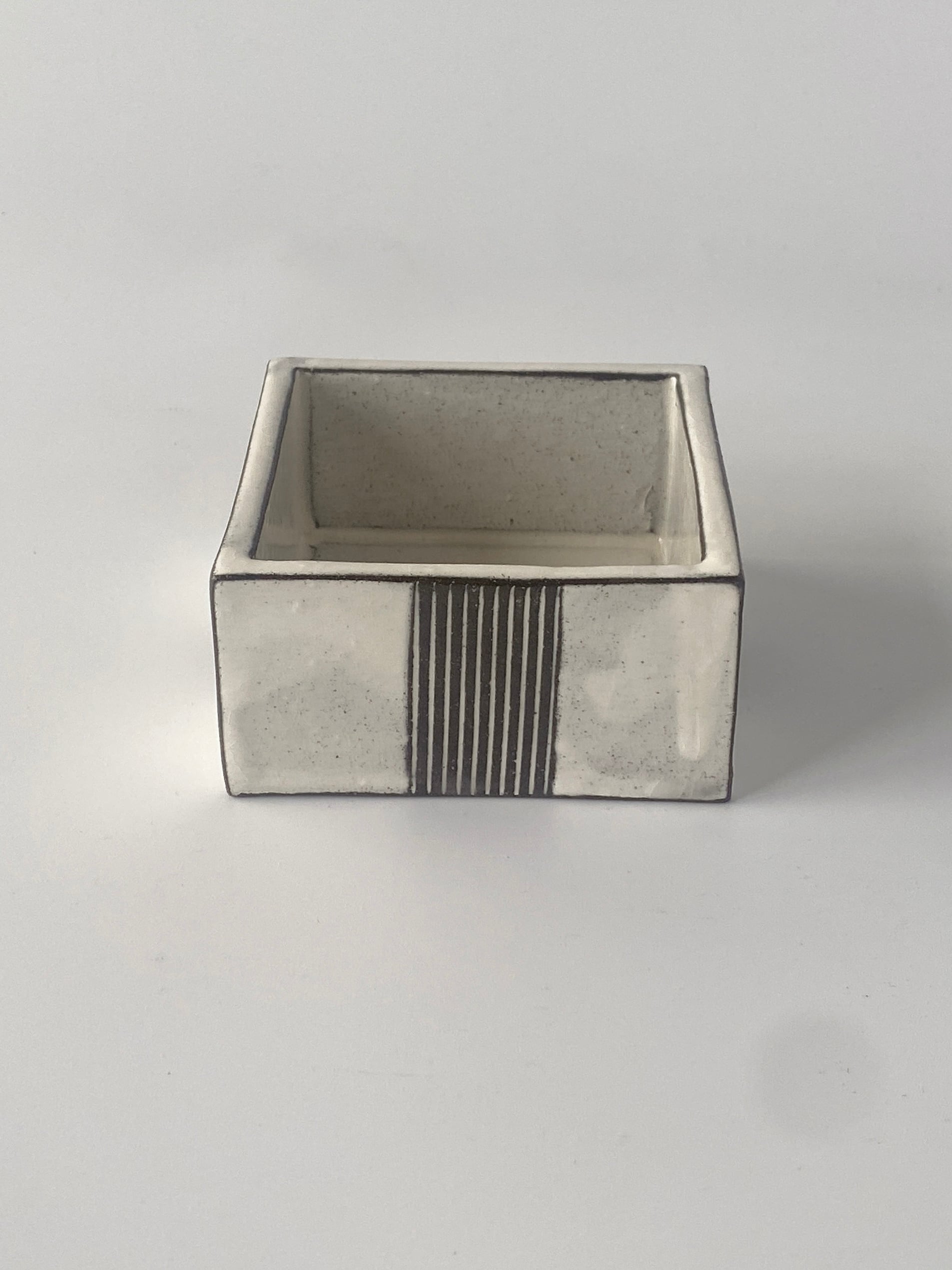 (美濃焼)黒土白化粧一本櫛目角鉢 小