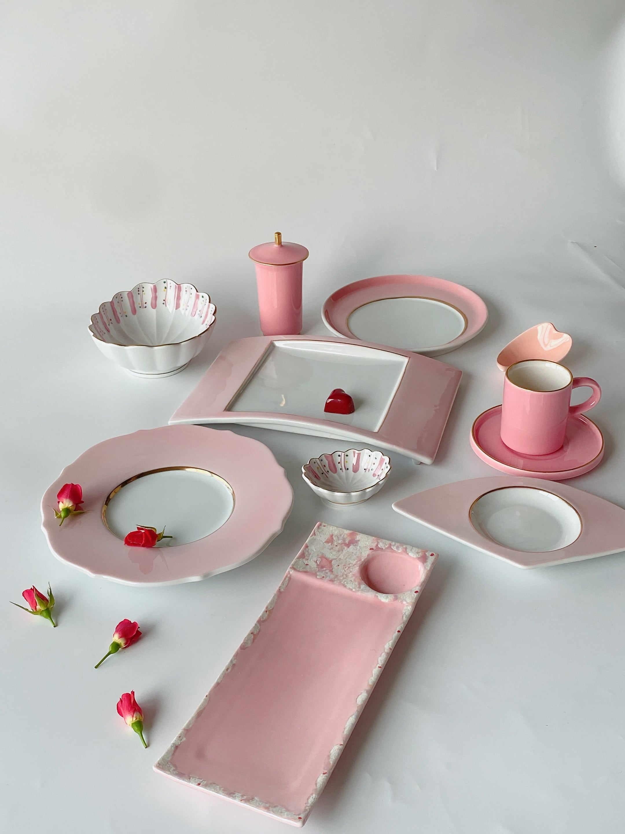 柔らかなピンクが可愛らしい花型の器です。